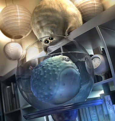 With Salad, Nowak adds new meaning to the work of Arcimboldo and Giger. Made of fresh vegetables, Alien becomes edible, and grotesquely, the ferocious monster becomes the one to be devoured. Yet, surprisingly, Salad seems to be ready to eat a piece of meat. Double-edged as it is, the image functions as a visual paradox, an idea corroborated by the vegetable composite which holds the piece of beef like Hamlet does so with the skull while asking, "To be or not to be?" But here the whole matter is to be and not to be. Nowak presents a veggie creature pressumably meditating on the very nature of being a piece of meat... This is superb 21st-century vanitas. Just imagine, Salad pronouncing Pindar's famous lines from Odes, Pythia 8: "We are things of a day. What are we? What are we not? The shadow of a dream is man, no more."*